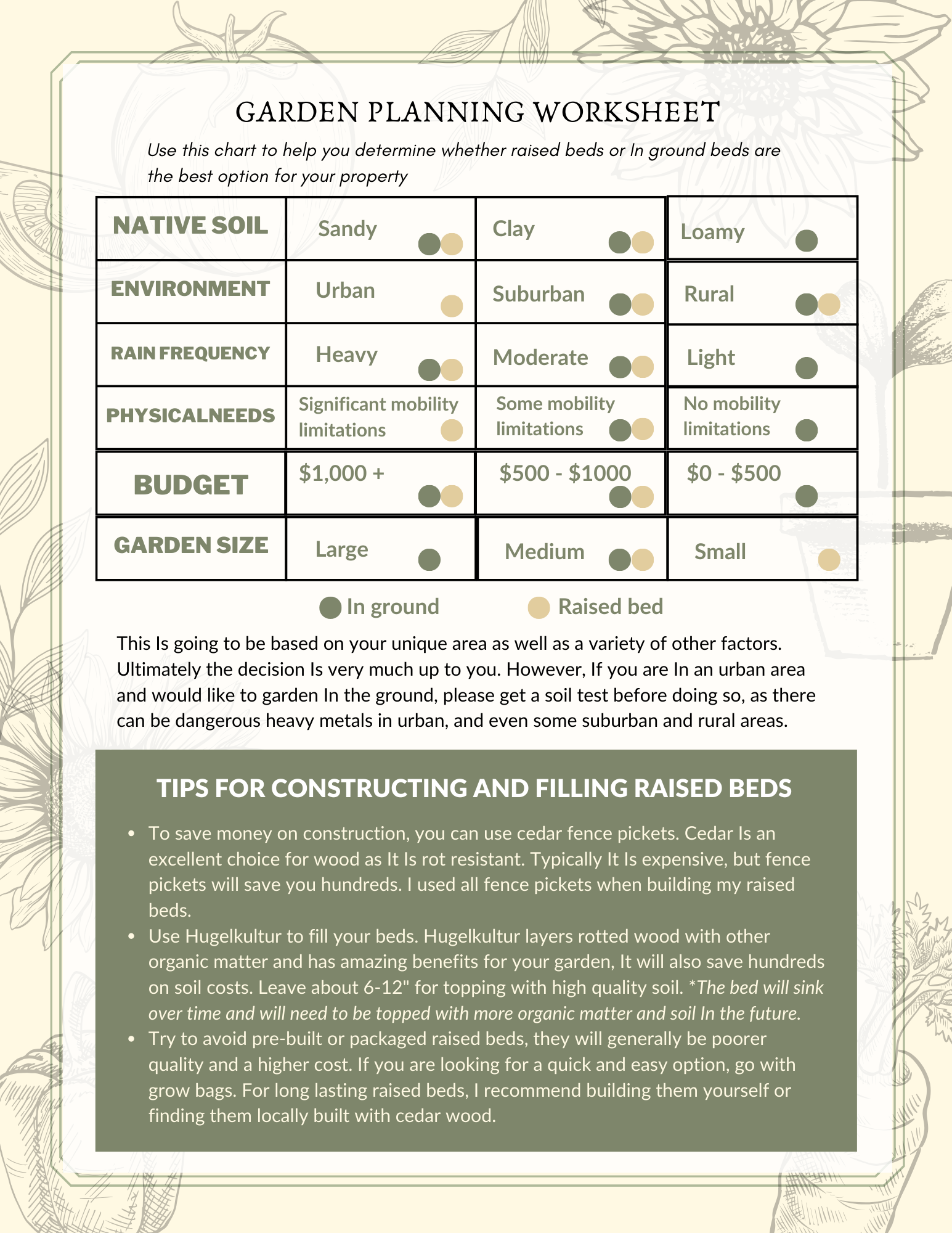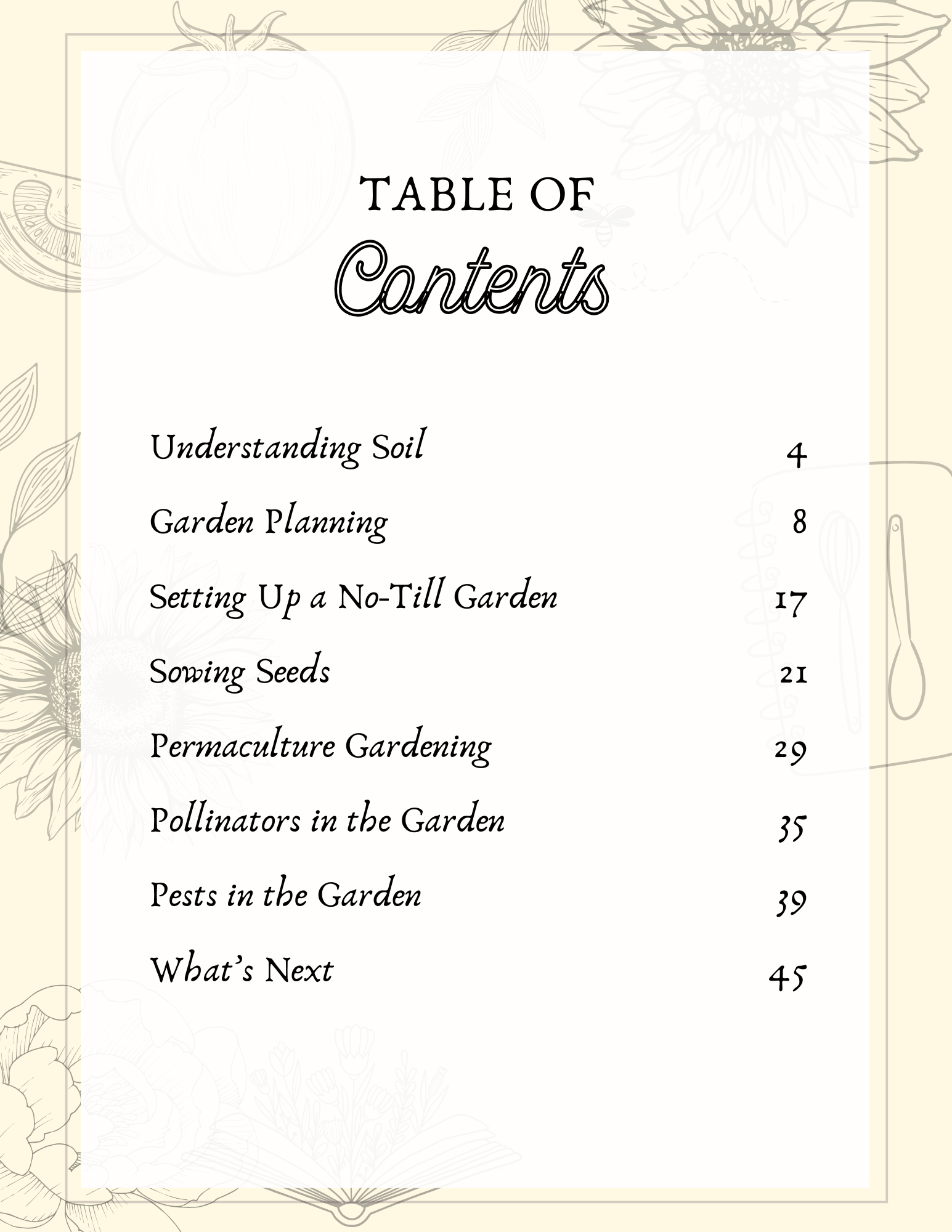 This guide is designed to support the beginning gardener or any gardener who wants to try a new way of growing, one that works WITH nature instead of against it. In this guide we will focus on giving to your soil, your garden, your ecosystem, and trusting that your garden will give back in return. In this guide we will cover the following: